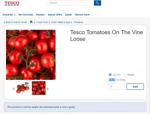 - Tesco Tomatoes On The Vine Loose ca. £0.18 each. You can compromise and buy the cheap, tasteless, watery salad tomatoes but it will make the burger less tasty. I tried that.